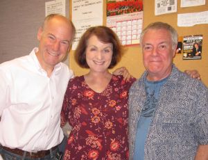 Carolyn Fox was lucky enough to have not one, but two world-class actors and comedians in the studio today: Jim Meskimen who has appeared in many films and TV shows, including 5 Ron Howard films, the improv comedy show “Who’s Line is it Anyway,” and was the voice of George W. Bush and other politicians on viral JibJab animated shorts; and Phil Proctor of the surrealistic classic rock-comedy troupe The Firesign Theater (“Don’t Crush That Dwarf, Hand Me the Pliers,” “How Can You Be in Two Places at Once,” etc.) and who was voice was Howard in the animated TV series “Rugrats,” and has appeared in such Pixar films as “Monsters Inc.” and “Finding Nemo,” among many other creative projects.