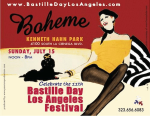 If you are in Los Angeles looking for a way to celebrate, you might enjoy Bastille Day L.A. Festival on Sunday, July 15 (technically the day after Bastille Day) from noon to 8 pm at the Kenneth Hahn State Recreational Area, located at 4100 South La Cienega Blvd. There will be L.A. Street performers, Parisian Waiters Race, a Provencal Petanque Tournament and French food. The cost is $5; Children ages 12 and younger: Free. For parking costs and shuttles, visit Bastille Day L.A. Festival.